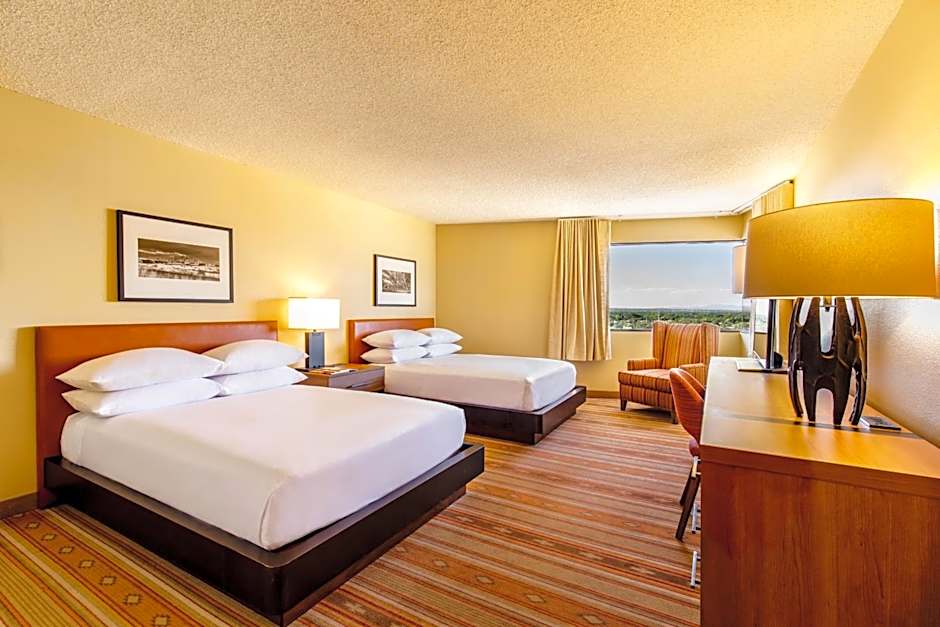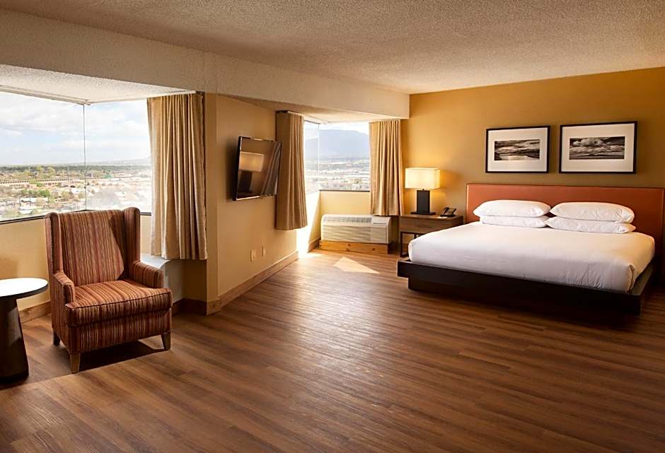 This rooms offers views of Albuquerque and the Sandia Mountains. It is adorned with genuinely crafted Southwestern furnishings.
